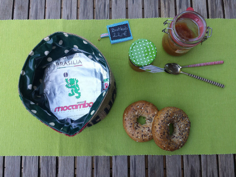 weil der Boden aus besonders hübschen, bereits gebrauchten Kaffeepackungen besteht