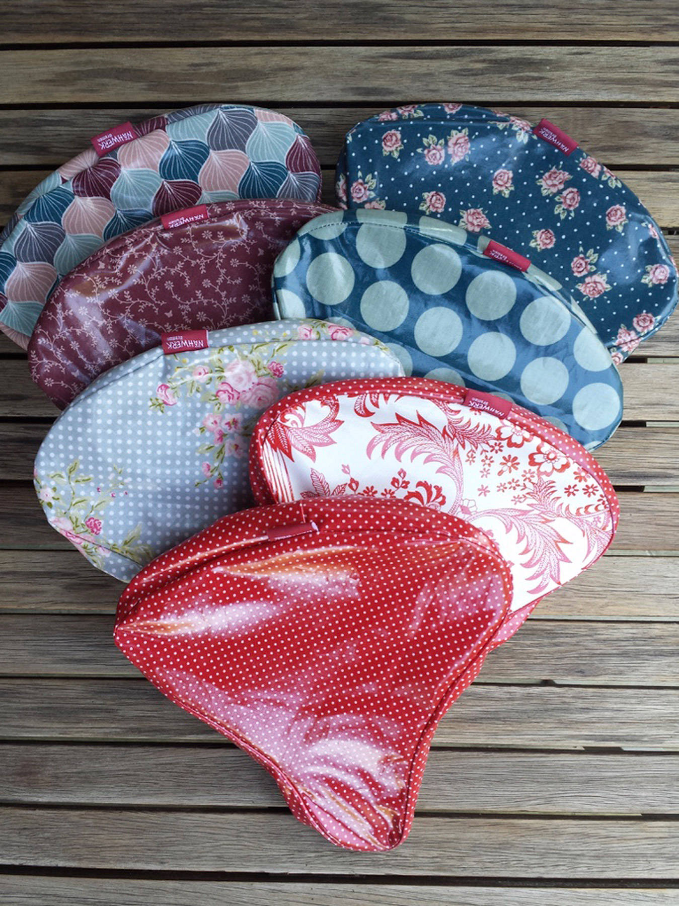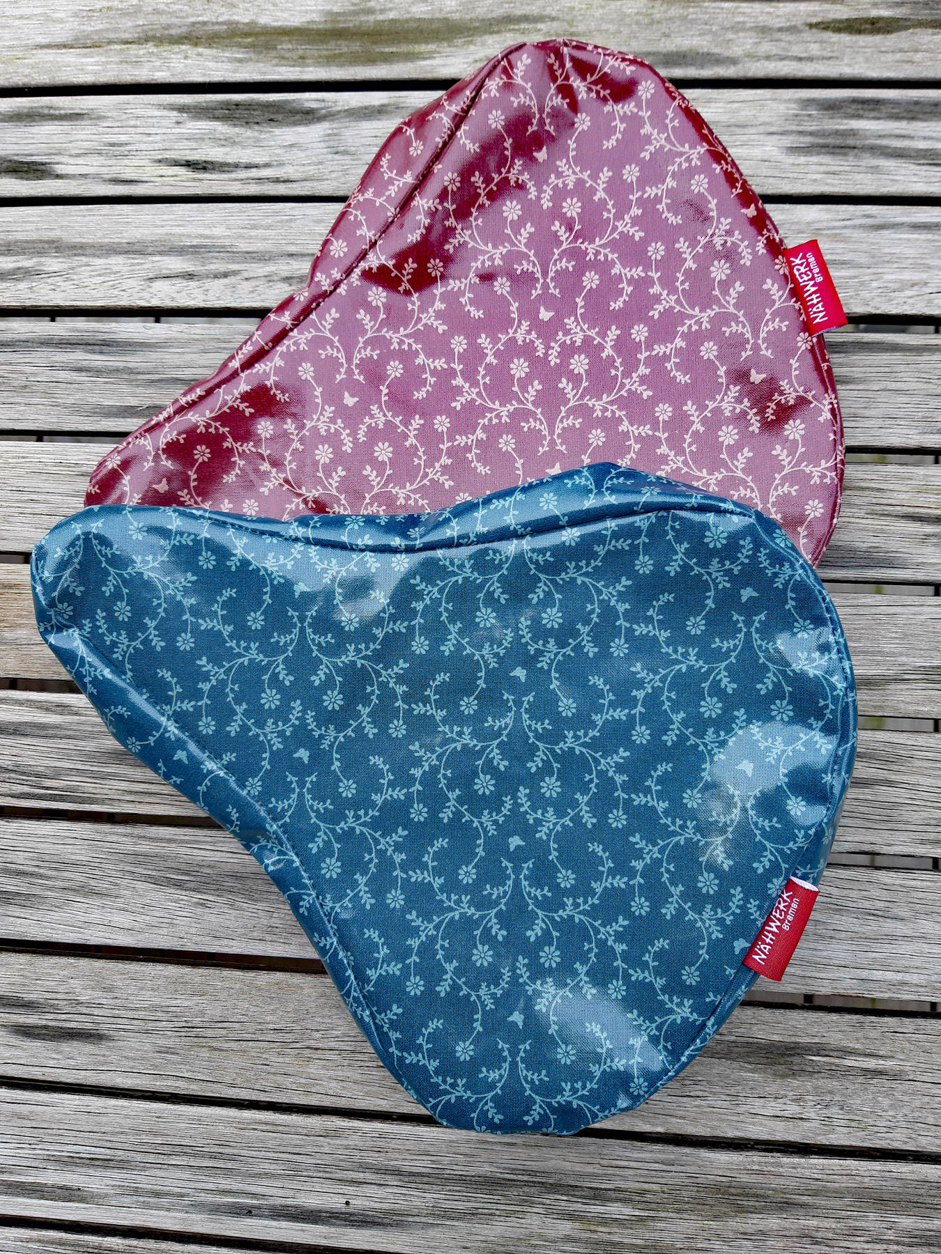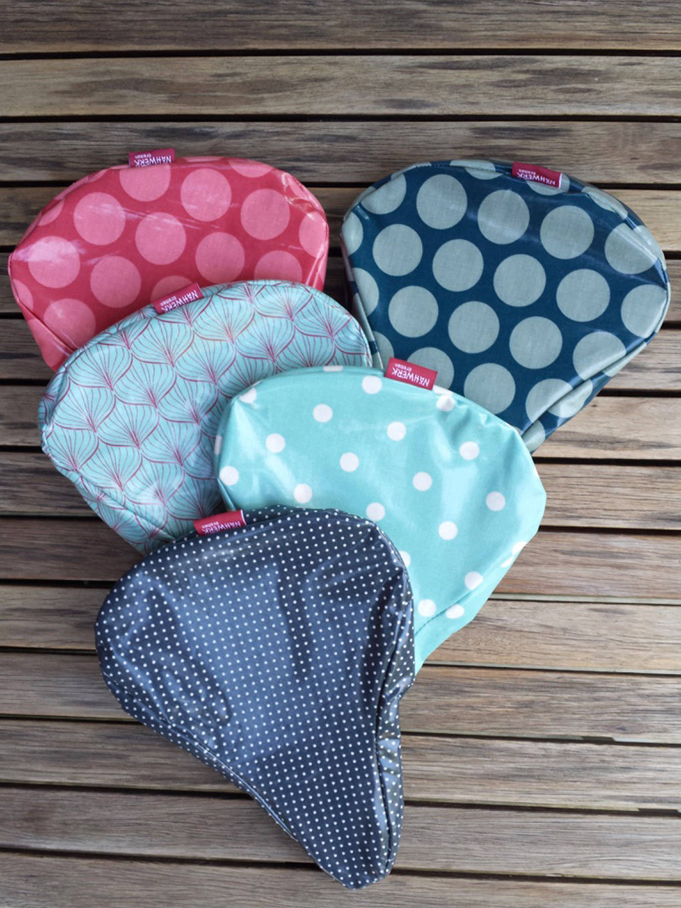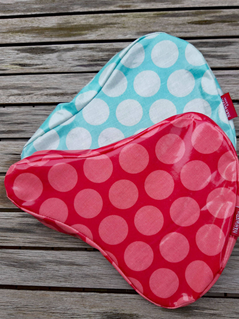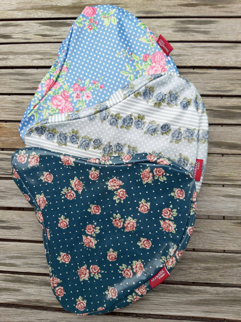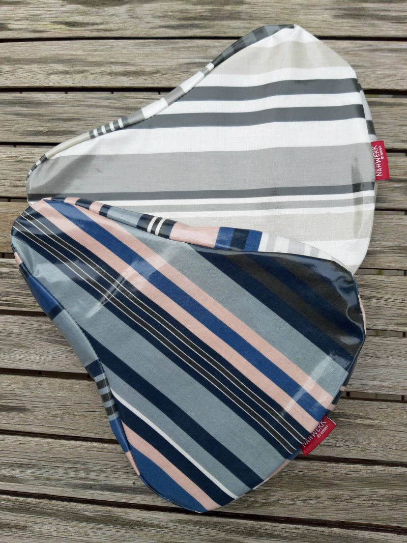 Material: Das Wachstuch, das für den Sattelschutz seinen Einsatz findet, ist entweder aus PVC-freier beschichteter Baumwolle oder aus 100% PVC mit nonwoven Rückseite. Alle Modelle mit starker Gurtbandschlaufe zum Anschließen mit einem Fahrradschloss.