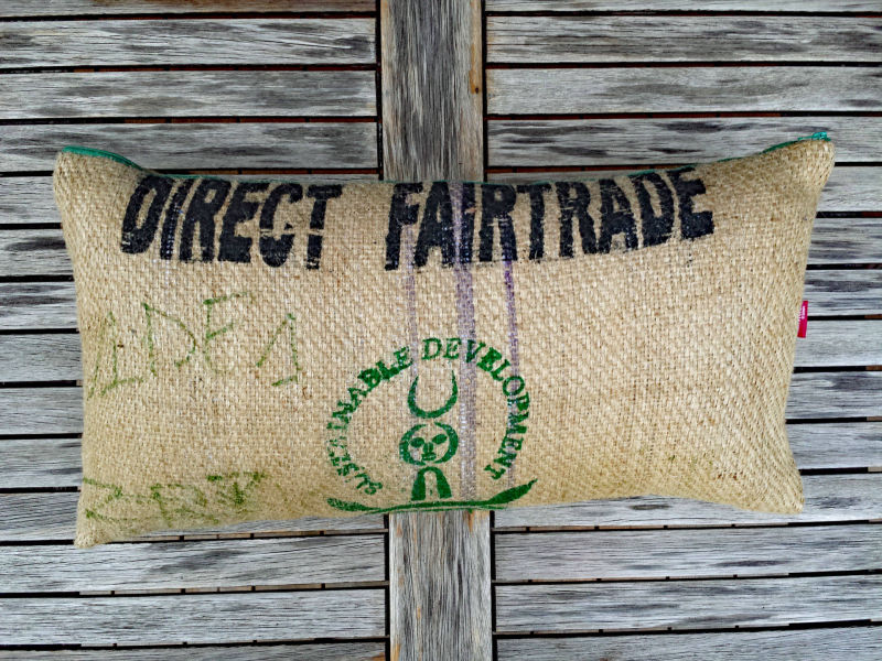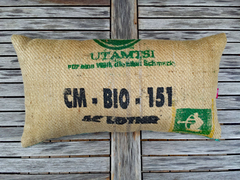 Größe der Kissen richtet sich nach der Größe des Kaffeesackmotives. Das hat zur