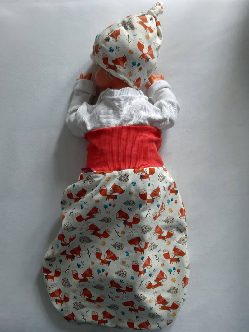 (95% Baumwolle 5% Elastan) kann einmal umgeschlagen werden. Der Strampelsack